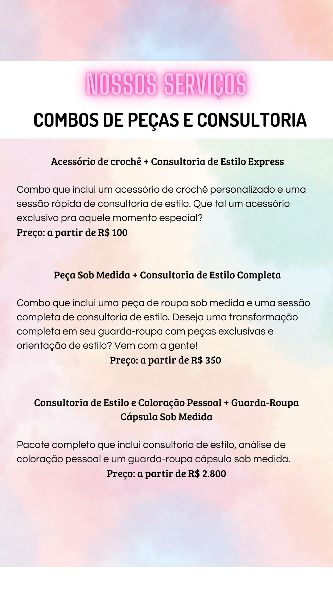 Aqui estão os serviços que prestamos combinados, com valores especiais. Gostou de algum e quer mais informações?