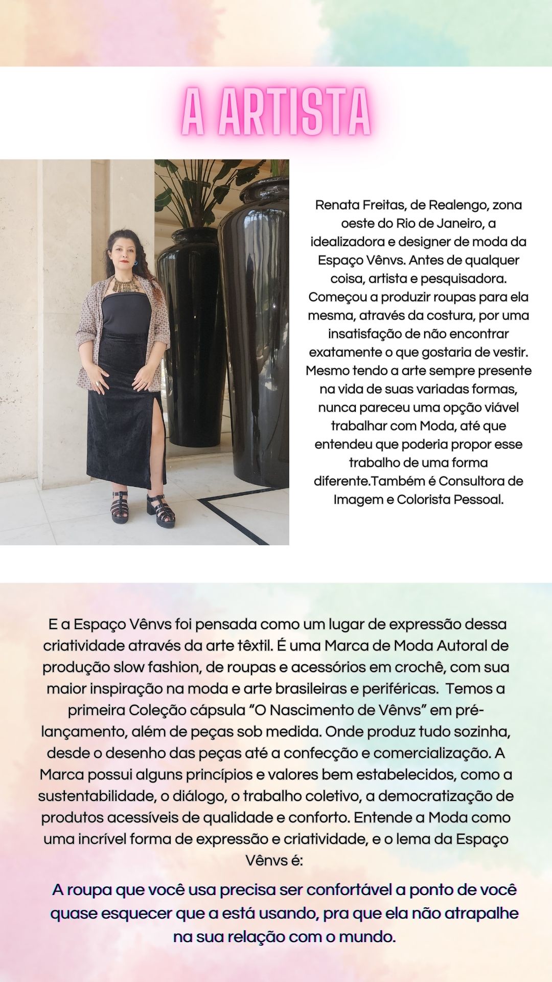 Somos a Vênvs, um espaço-atelie criativo voltado para a produção de artes variadas desde confecção de roupas à filtro dos sonhos e pinturas. Acreditamos na responsabilidade da produção artistíca, principalmente para fins comerciais, então adotamos ideiais de uma produção slowfashion e sustentabilidade possível: nosso estoque de materiais é limitado e rotativo, os retalhos de tecidos são utilizados na confecção de outras peças e os resíduos inutilizáveis são encaminhados para reciclagem. Optamos por embalagens recicláveis, como sacolas de papel e ecobags reutilizáveis de tecido.